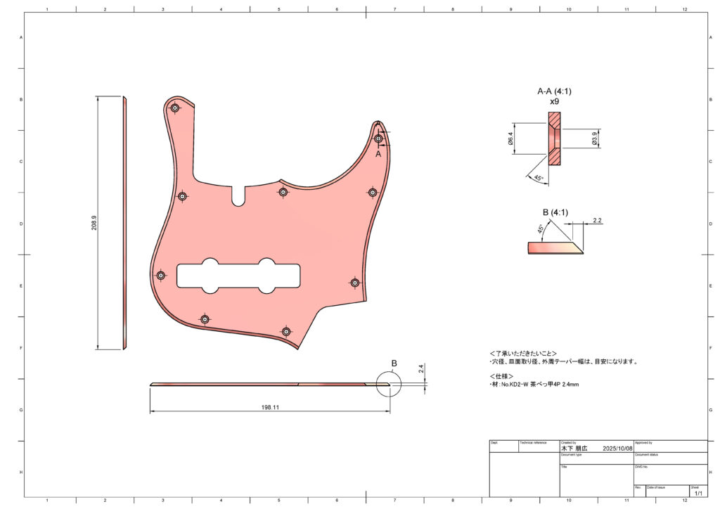 材料は、No.KD2-W 茶べっ甲4P 2.4mmです。