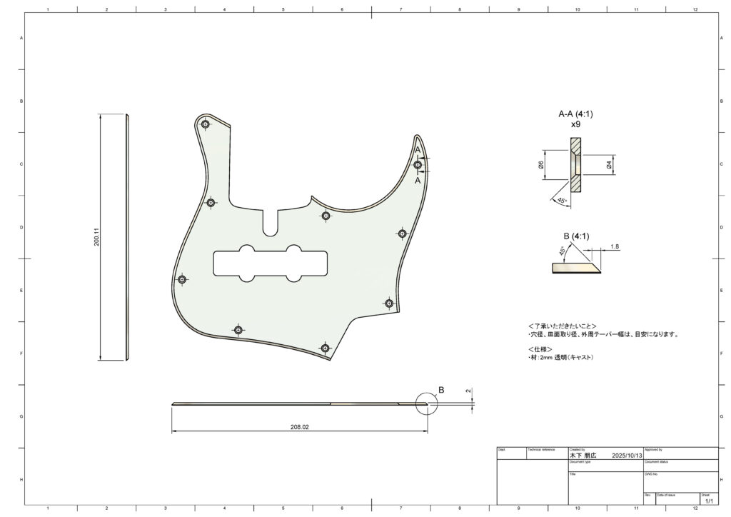 ATELIER Z Type Jazz Bass ピックガード オーダー