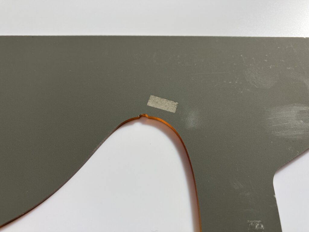 こちらは、裏面ですが、ところどころ裏打ち塗装が両面テープで剥がれてしまいました。
