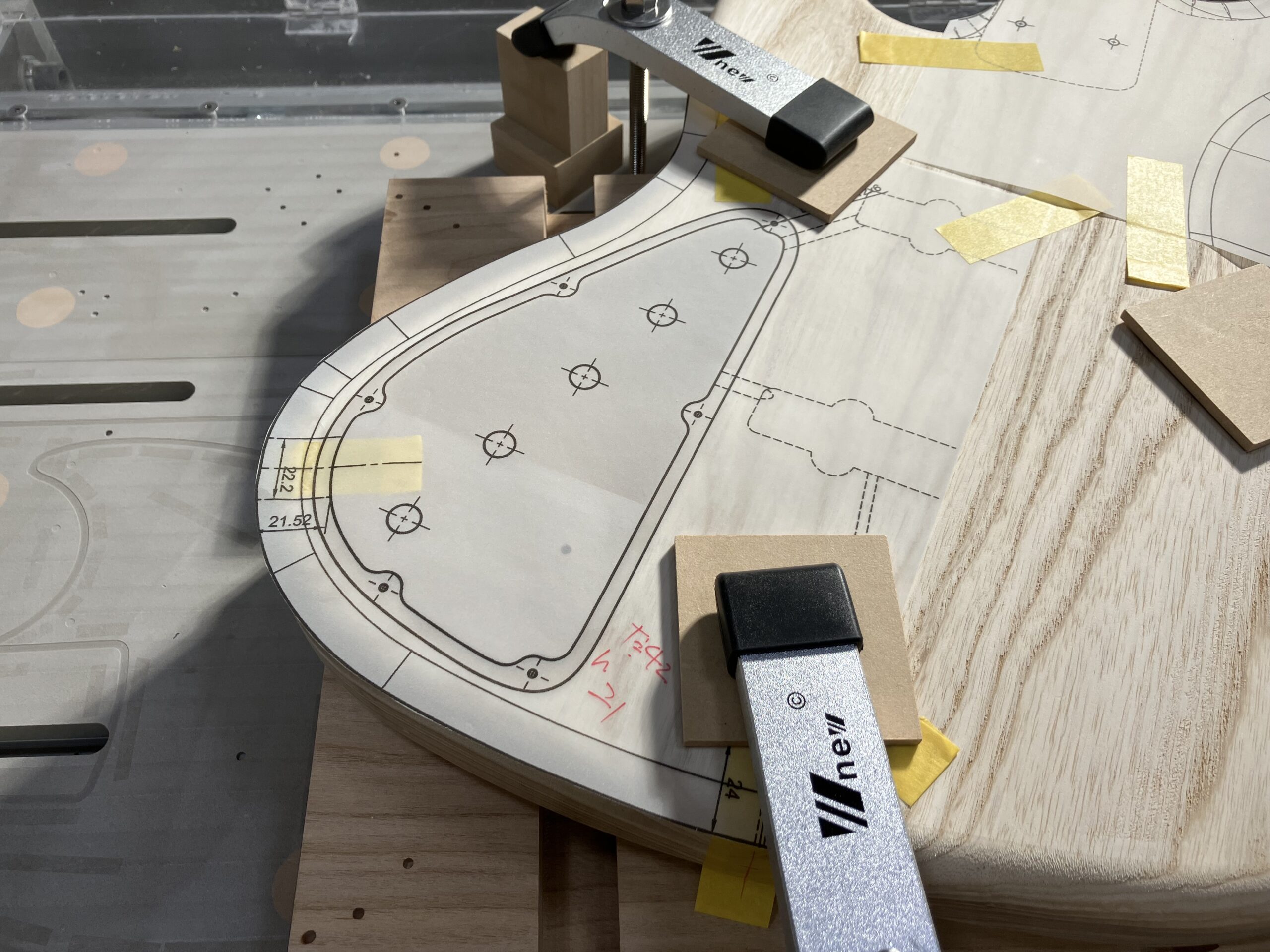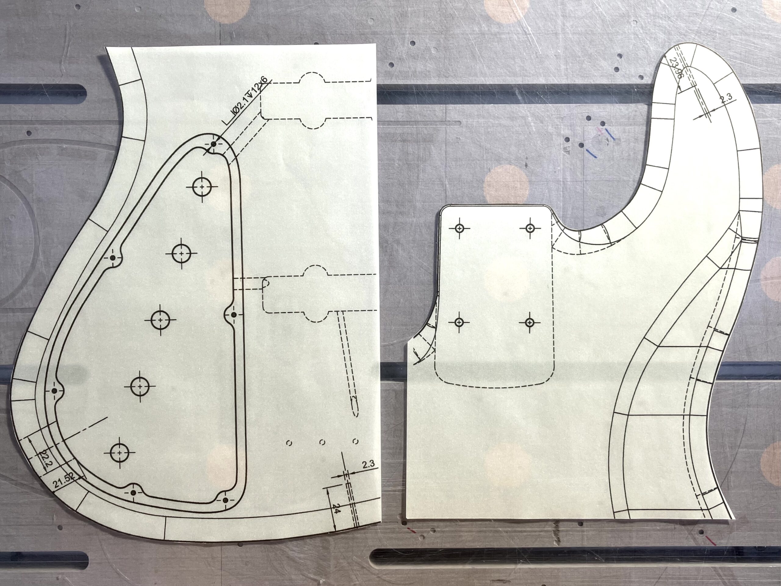 横穴(サイドジャック、ストラップピンビス)を加工する為の準備でトレーシングペーパーに図面を印刷します。
