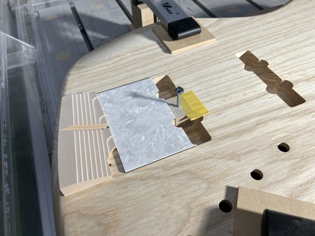 弦アース穴もジグを使って穴を開けます。