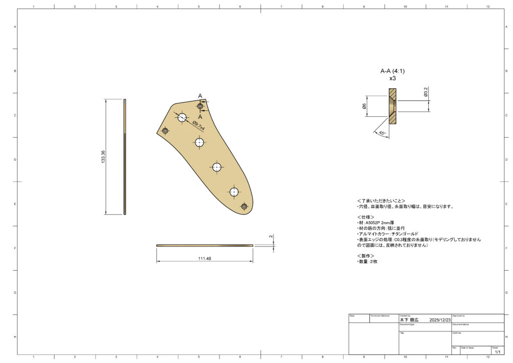 カラーアルマイト処理をして完成です。