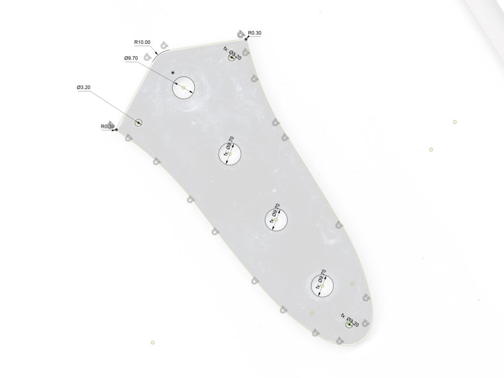 ピックガードは、以前製作したもので、今回、同色でコントロールプレートもの依頼をいただきました。